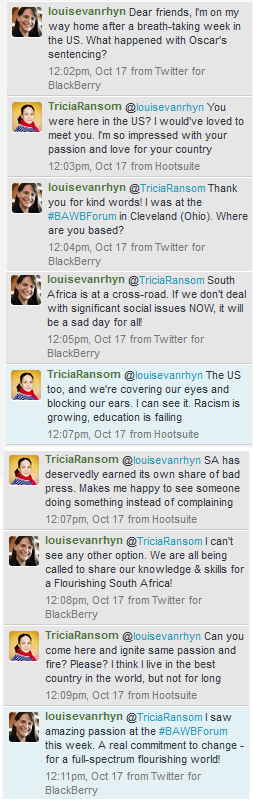 I’ve never met Louise in person – I only know her from Twitter. She lives in South Africa, and has a love, passion, and excitement for her country that you rarely see. This blog post exists because of a conversation she and I just had (minutes ago) on twitter.