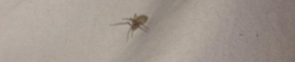 I threw back the sheets to get out of bed this morning and disturbed this horrible thing from his hiding place. I took these pictures, (with its legs it was about the size of a dime) so I could identify if it was poisonous, and then I killed it with my shoe…or so I thought.